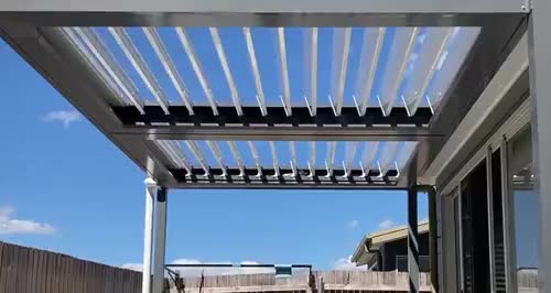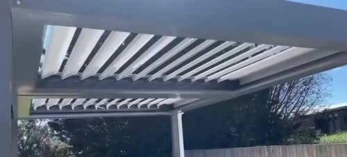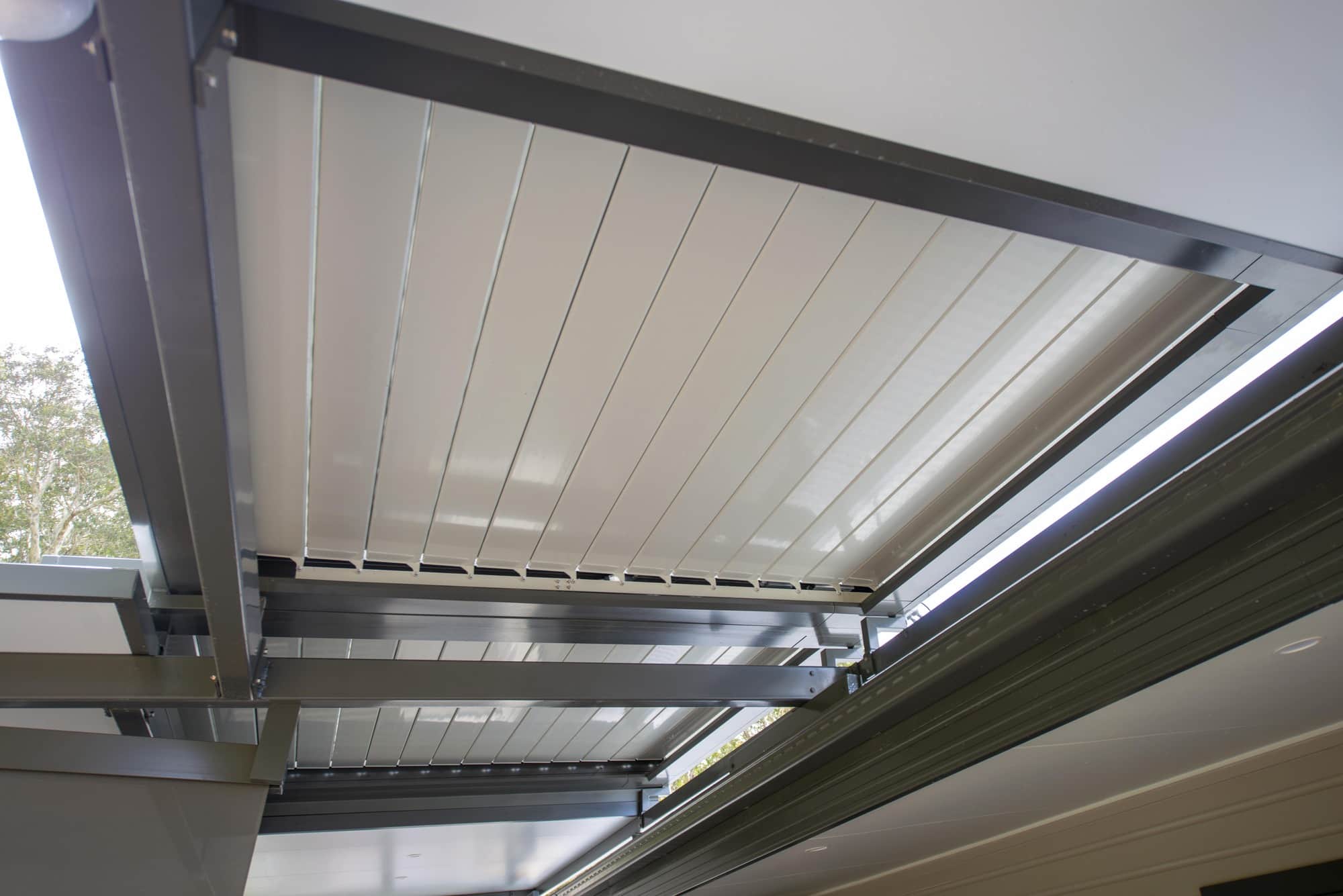 Lumex outdoor louvred motorised shading solution with automated intelligence which allows the user to adapt their outdoor living environment for all 4 seasons.